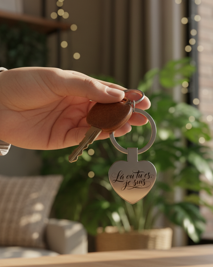 Ajoutez une touche unique à votre quotidien avec nos porte-clés personnalisés. Parfaits pour offrir en cadeau ou pour vous-même, ces porte-clés sont personnalisables avec un nom, une date ou un message spécial. Fabriqués à partir de matériaux de haute qualité, ils allient style et durabilité. Que ce soit pour un anniversaire, un mariage ou un remerciement, nos porte-clés personnalisés sont l'accessoire parfait pour marquer chaque occasion spéciale. Découvrez notre collection variée et faites plaisir à vos proches avec un porte-clés qui leur ressemble.
